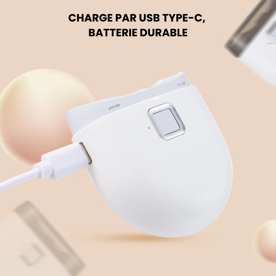 La batterie rechargeable de 300 mAh offre une autonomie permettant plusieurs utilisations avec une seule charge. Le temps de recharge complet via USB Type-C est d’environ 1 heure.